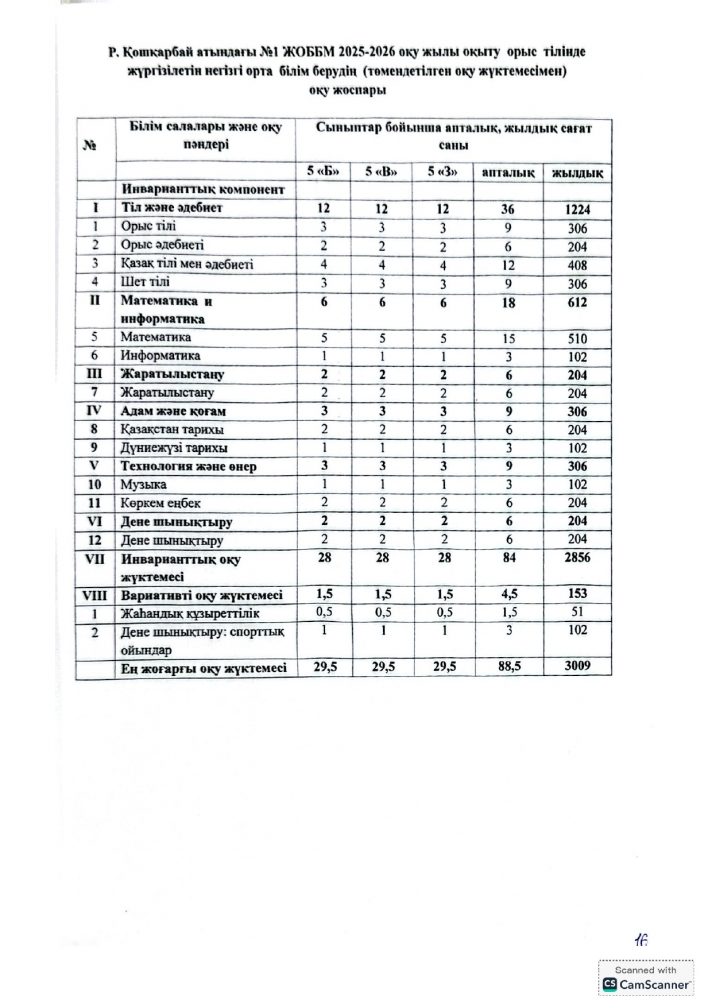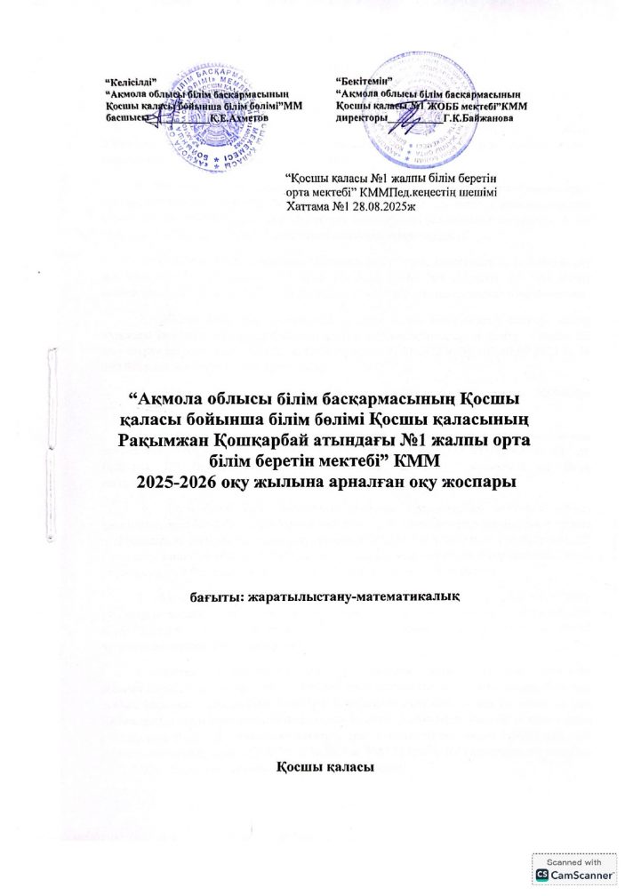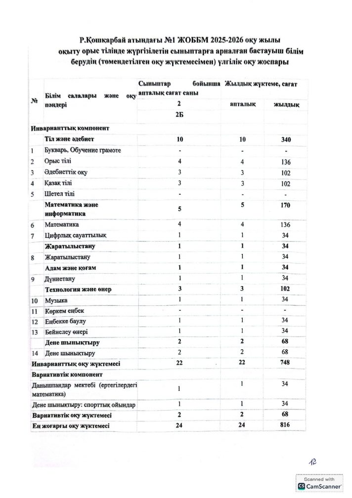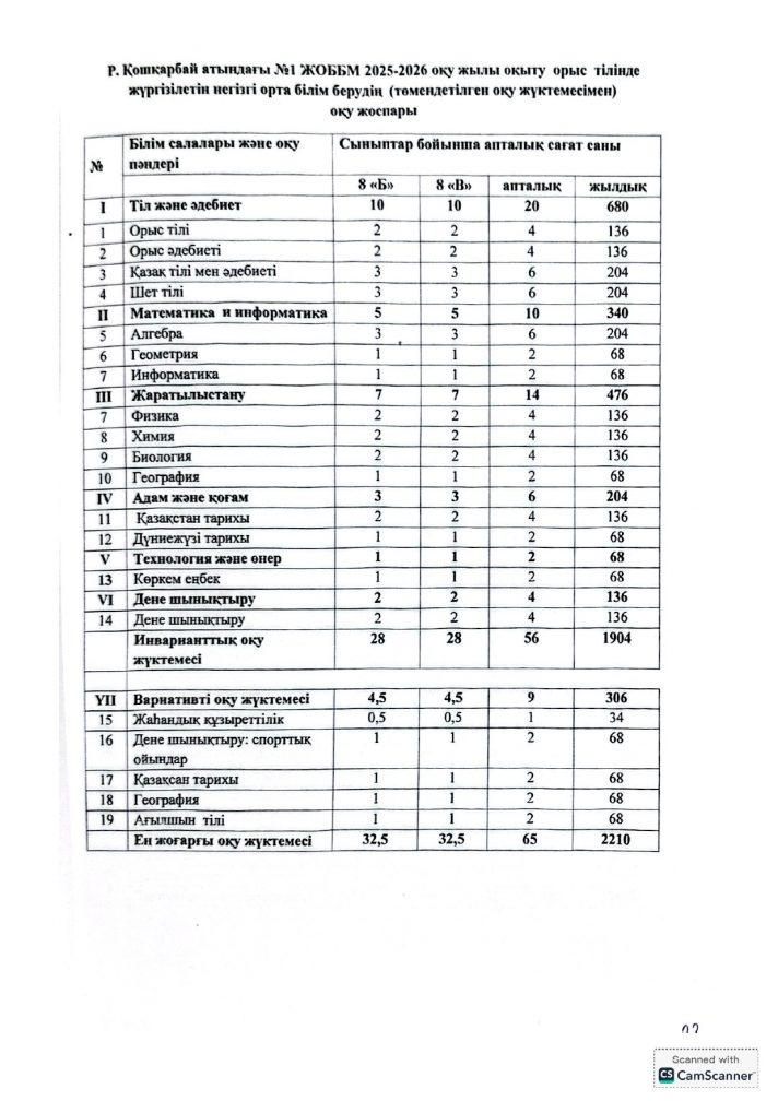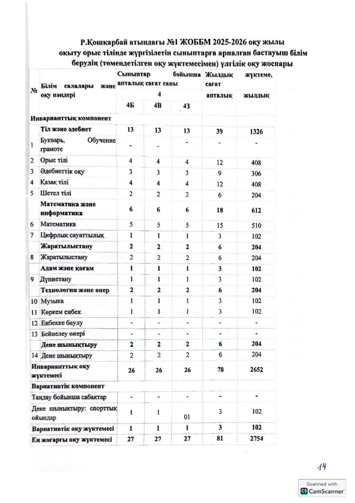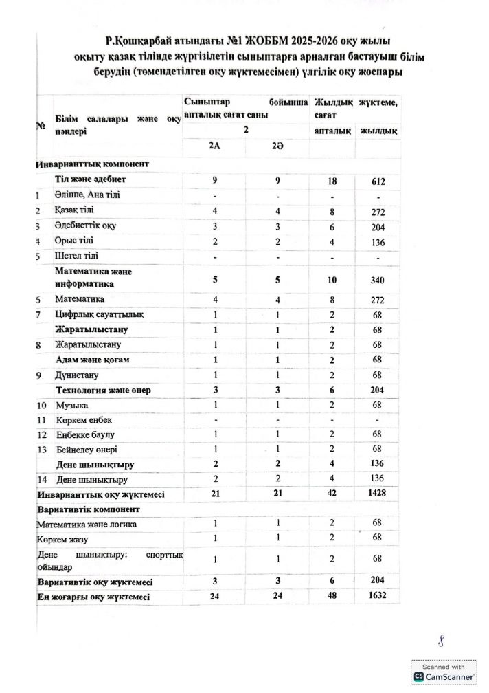 Мектептің 2025-2026 оқу жылына арналған оқу жоспары