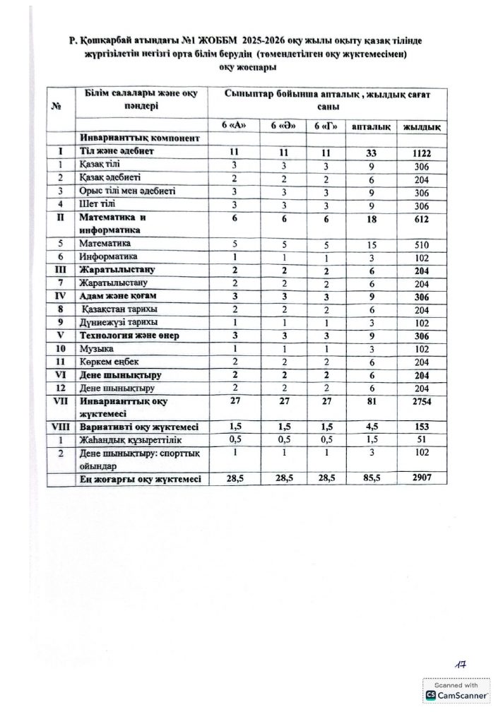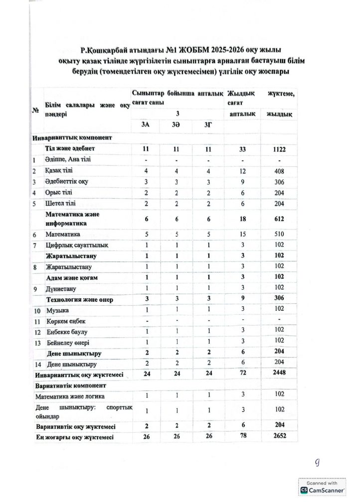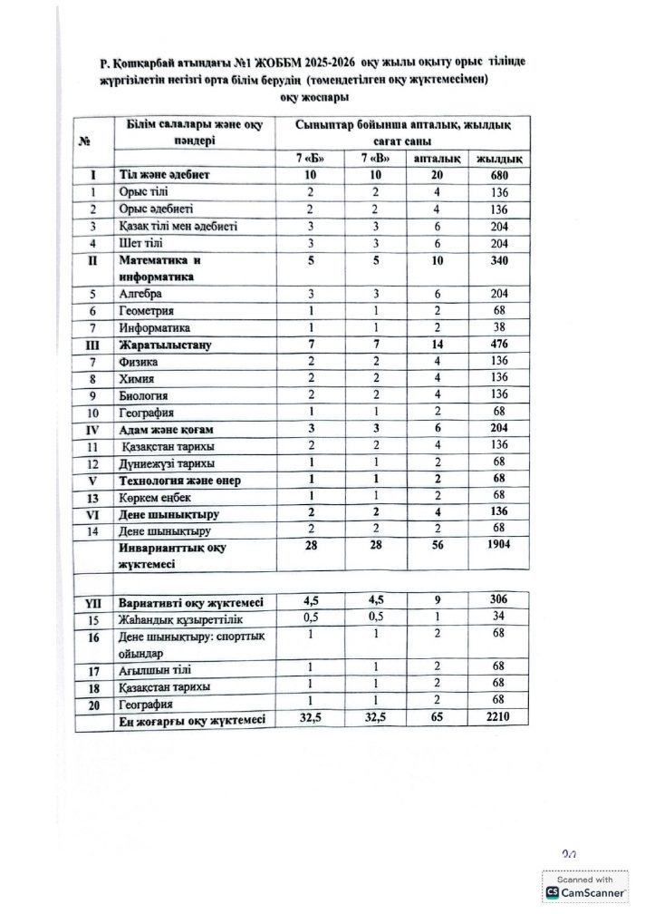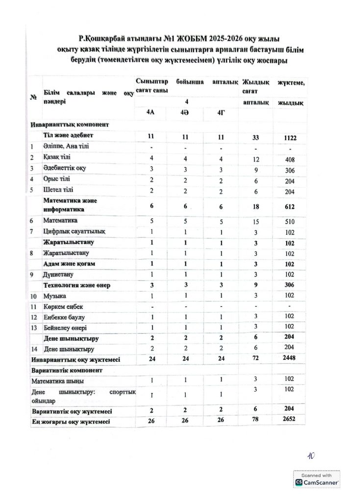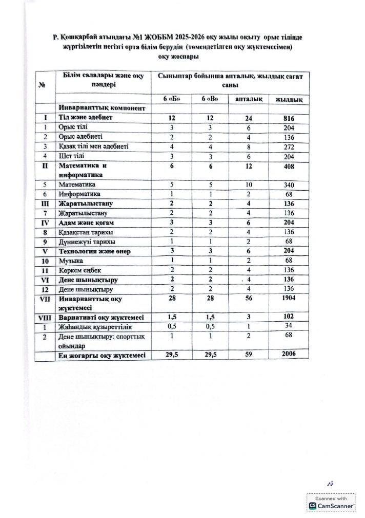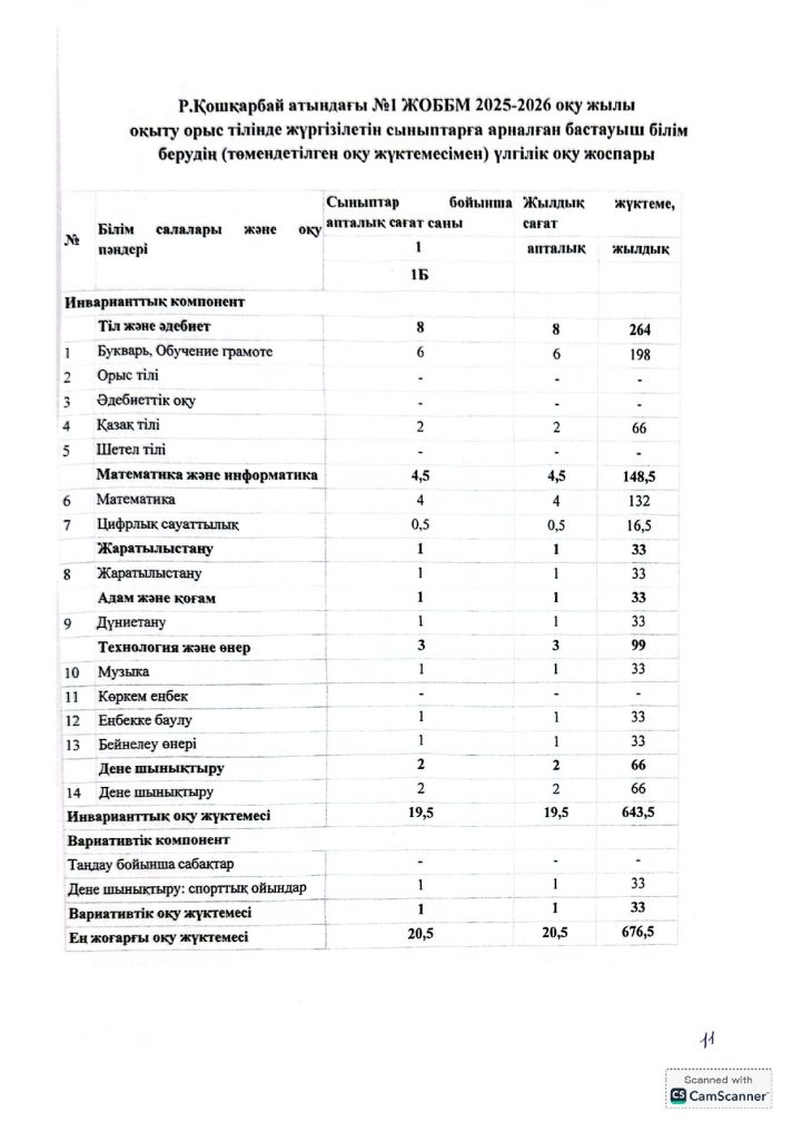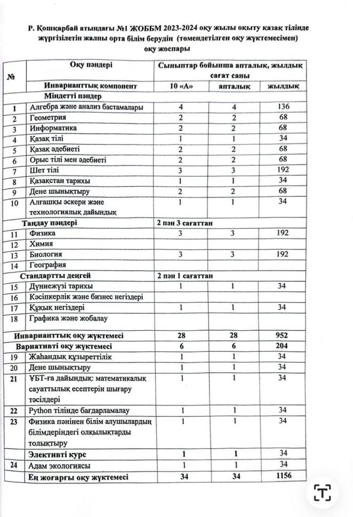 Мектептің 2025-2026 оқу жылына арналған оқу жоспары