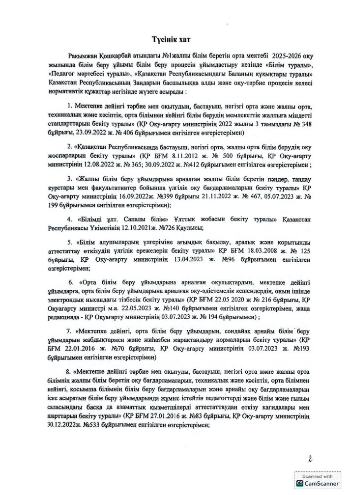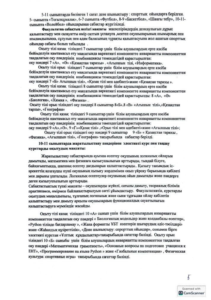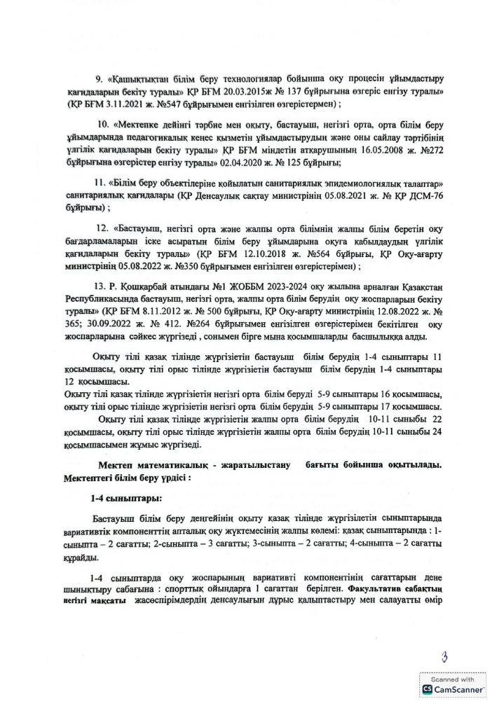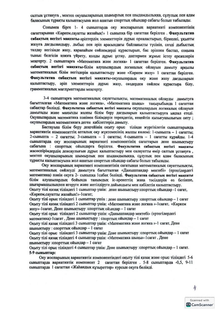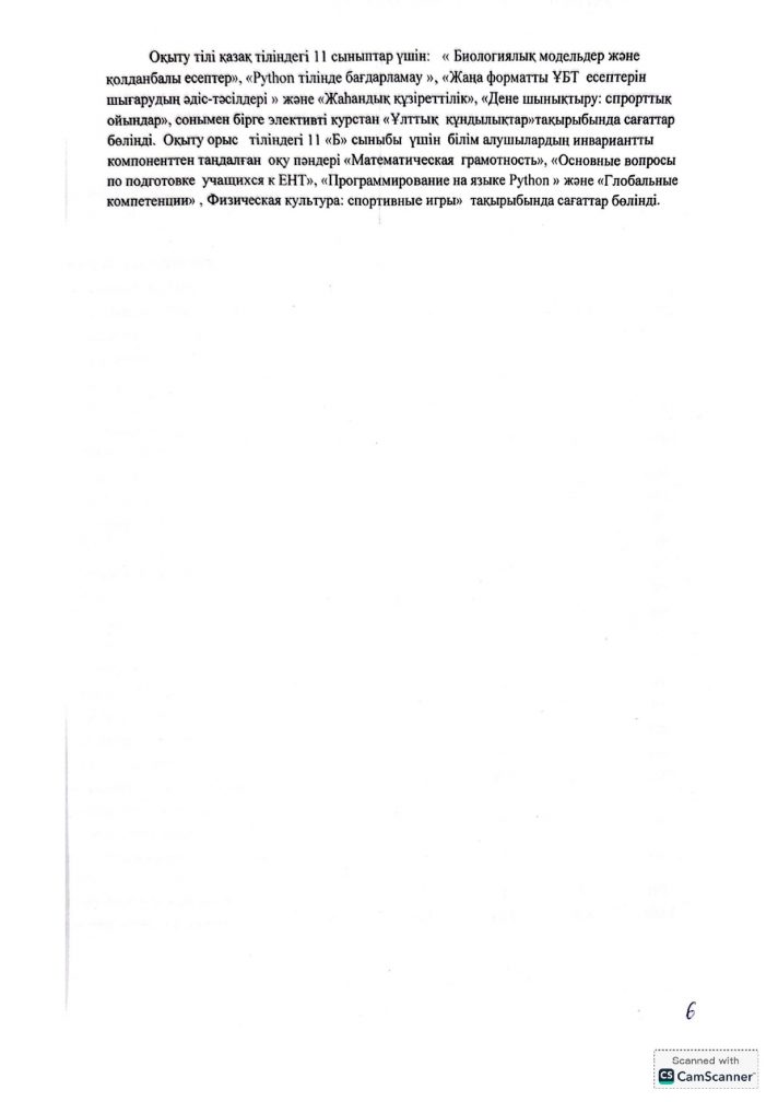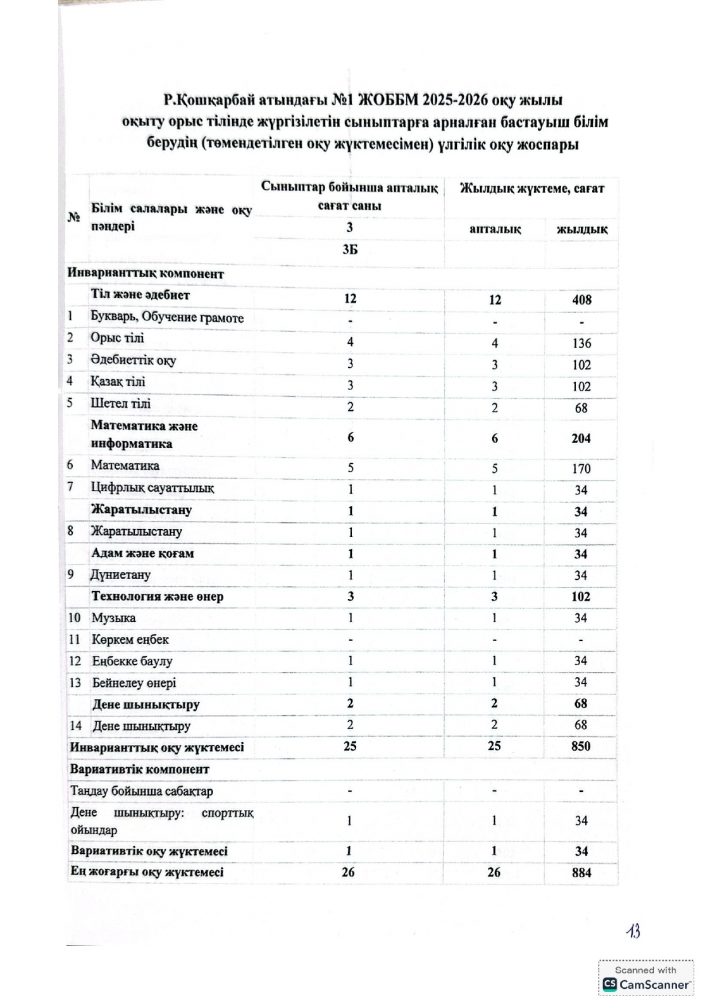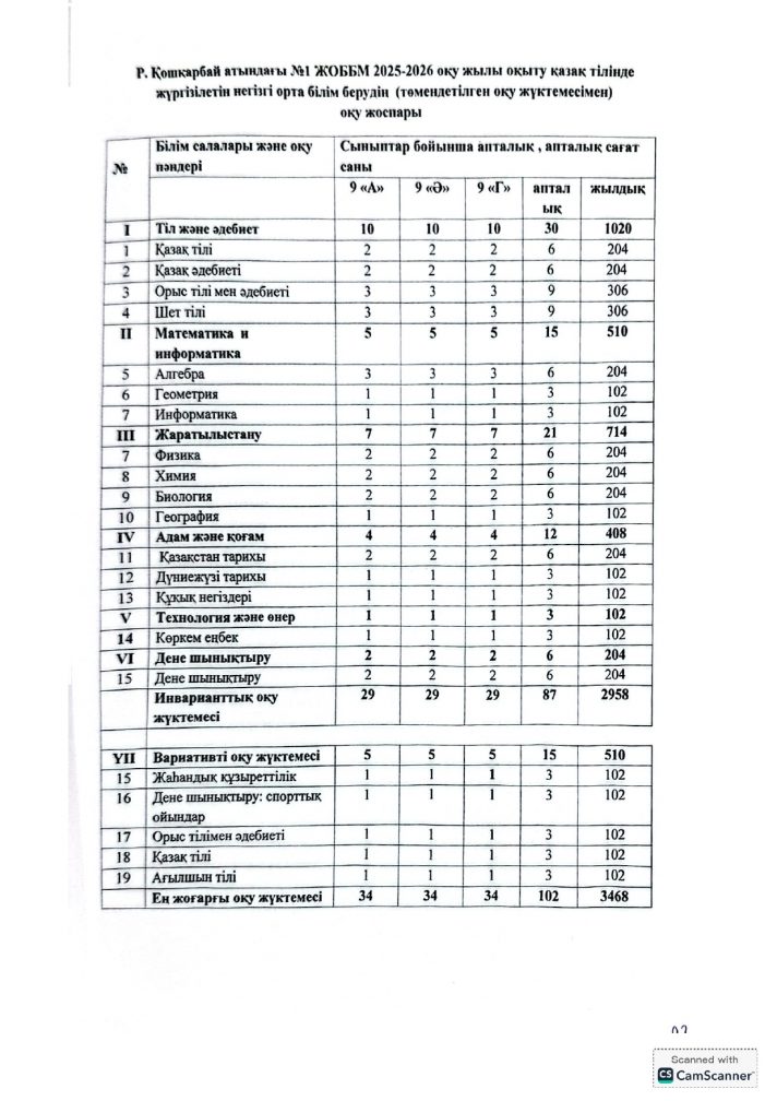 Мектептің 2025-2026 оқу жылына арналған оқу жоспары