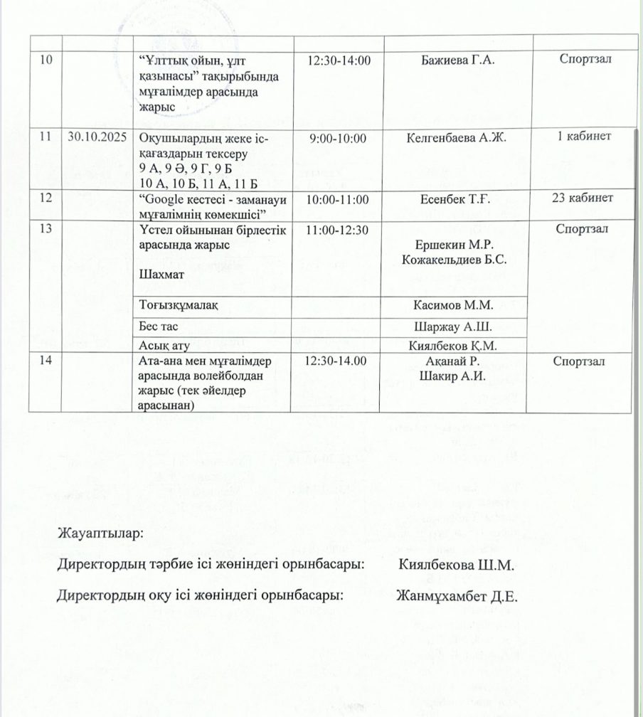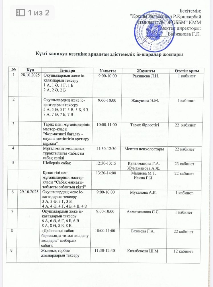 Күзгі каникул кезеңіне арналған әдістемелік іс-шаралар жоспары
