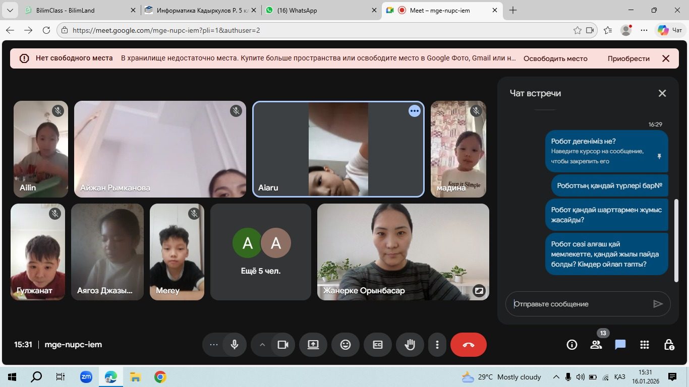 Ауа райының қолайсыздығына байланысты оқу процесі уақытша онлайн форматта ұйымдастырылды. Сабақтар Zoom және Google Meet платформалары арқылы өтті.